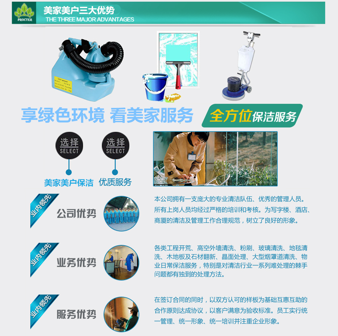 綿陽(yáng)市美家美戶家政有限公司成立于2004年,是一家專業(yè)從事家庭、企事業(yè)單位、賓館、酒店等保潔服務(wù)的大型服務(wù)公司,公司至今成立十一年來現(xiàn)有員工105名,管理人員16名,場(chǎng)地500平米。公司現(xiàn)網(wǎng)點(diǎn)有開元店、高新店、高水店、園藝店、三臺(tái)公司、江油公司、遂寧公司等多個(gè)服務(wù)網(wǎng)點(diǎn)。 公司自成立以來,一直秉承“謀利于耕者,謀福于食者”的宗旨,以“服務(wù)全川,***業(yè)萬人”為目標(biāo),堅(jiān)持“做一家客戶,樹一個(gè)口碑;做一個(gè)行業(yè),樹一個(gè)品牌”的服務(wù)理念,發(fā)揚(yáng)……